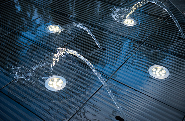 水本無(wú)形,它的物理特性讓它能輕易地跟隨容器而呈現(xiàn)不同的面貌。獨(dú)特的延展性使得水能呈現(xiàn)無(wú)以計(jì)數(shù)的不同效果。燈光的布置,介質(zhì)的紋理,顏色和動(dòng)態(tài)都能給水帶來(lái)無(wú)窮的變化。